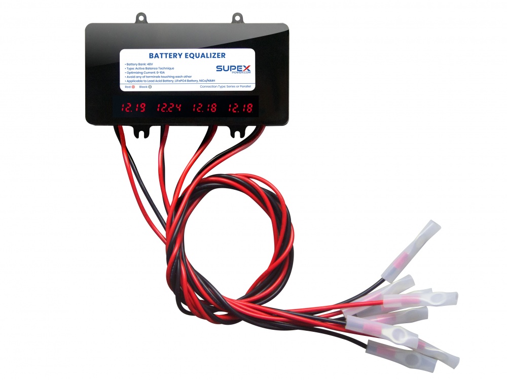 The BE48L continuously monitors the voltage of each battery in the series. When the voltage of one battery is higher compared to the others, it draws a portion of the energy and transfers it to another battery with a lower voltage. This process happens continuously.